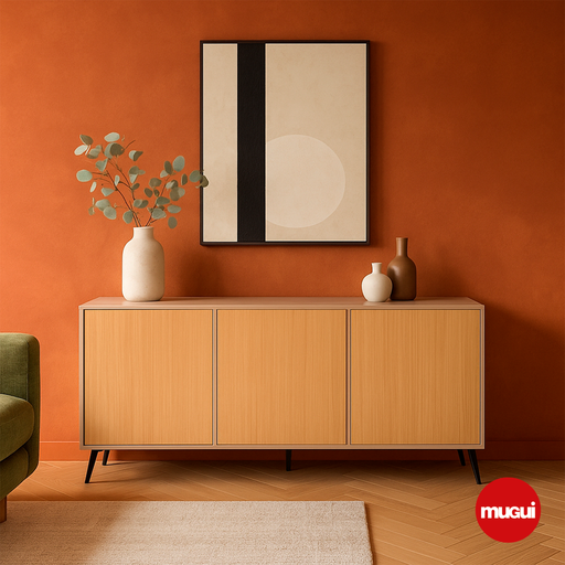 CREDENZA PREMIUMConsola auxiliar, estilo Mugui, Linea Forest, cuenta con 3 puertas con sistema de apertura de Push Open, con medidas de 150cm de frente x 42cm de f...