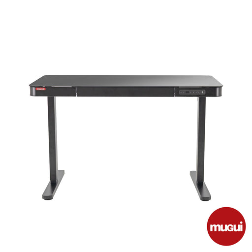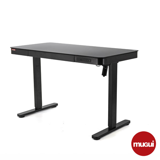 Grupo MuguiEscritorio ajustable de Vidrio Templado de 120cm de frente x 60cm de fondo con Gaveta Metálica, Altura Ajustable, Escritorio de Pie para Oficina en...