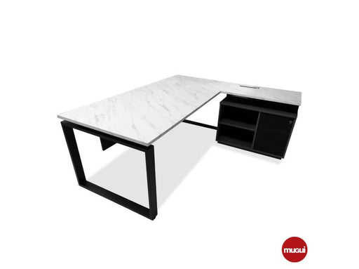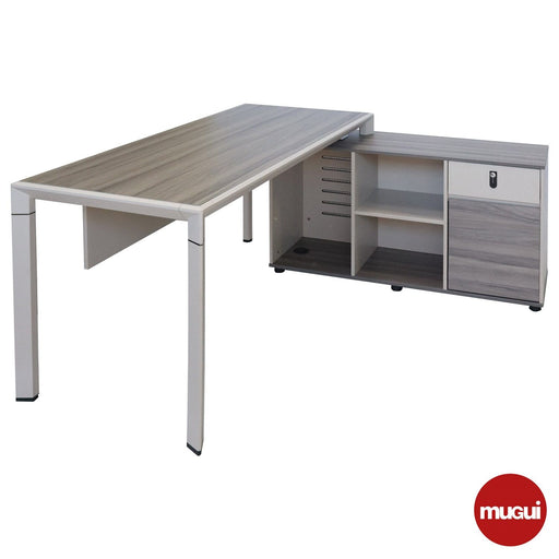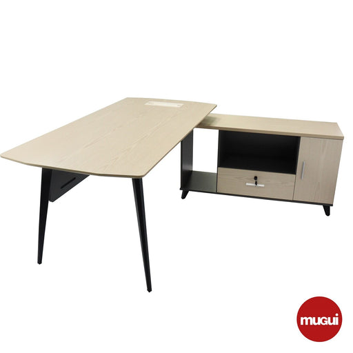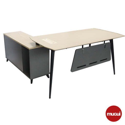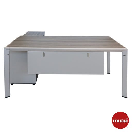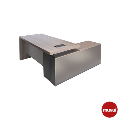 Linea MarsellaMódulo estación de trabajo en forma de escuadra o L, estilo Mugui, línea Marsella gerencial, cuenta con módulo auxiliar con espacios para almacenam...