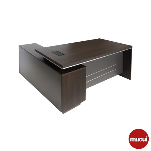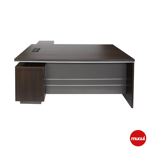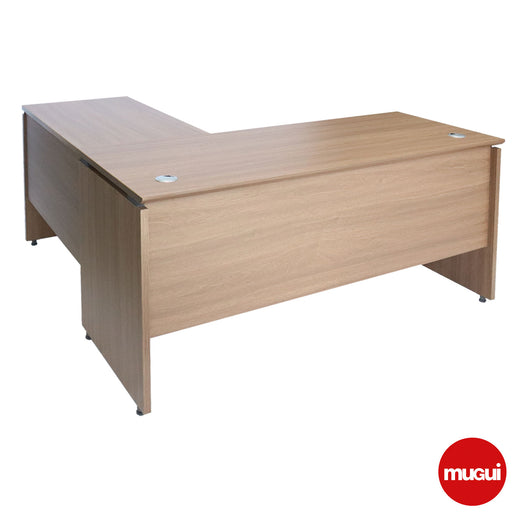 Linea EleganceEscritorio tipo escuadra, estilo Mugui, línea Elegance, con de 160cm de largo x 150cm de lado x 80cm de fondo x 75cm de alto. Con anexo de 150cm de...