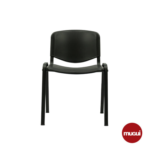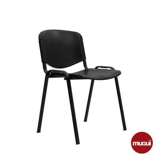 Silla esperaSilla fija, marca Mugui, sin descansa brazos, estructura metálica de tubo cilíndrico pintada al horno en color negro. Base de 4 puntos de apoyo, Es...