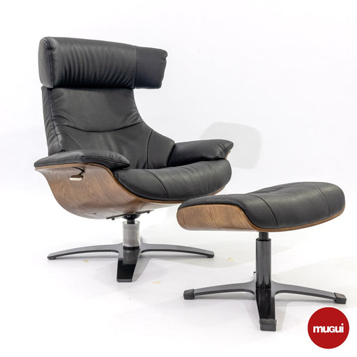 Butaca lounge Eames, este conjunto incluye el sillón y un ottoman (reposapiés), ambos giratorios 360°, que ofrecen un estilo elegante y comodidad e...