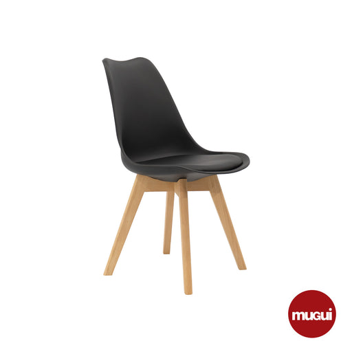 Linea teletrabajoCombina a la perfección diseño y confort.Patas de madera de haya.Asiento fabricado en plástico polipropileno.Es original, versátil y muy atractiva....